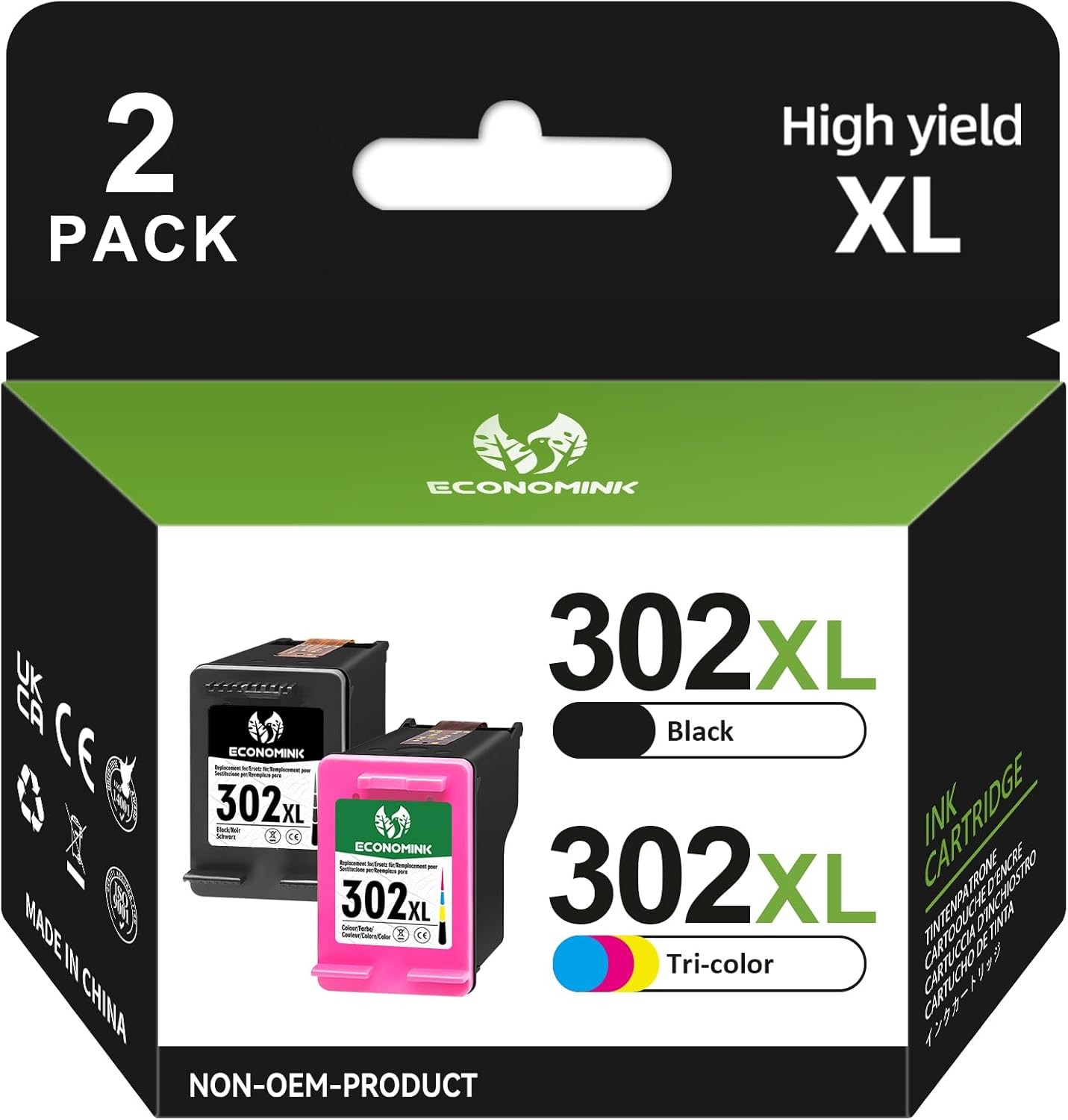 NineLeaf 302XL High Yield Ink Cartridge Combo Pack Remanufactured for HP 302 XL Cartridge for Envy 4502 4520 4521 4522 4524 4527 Deskjet 3630 3632