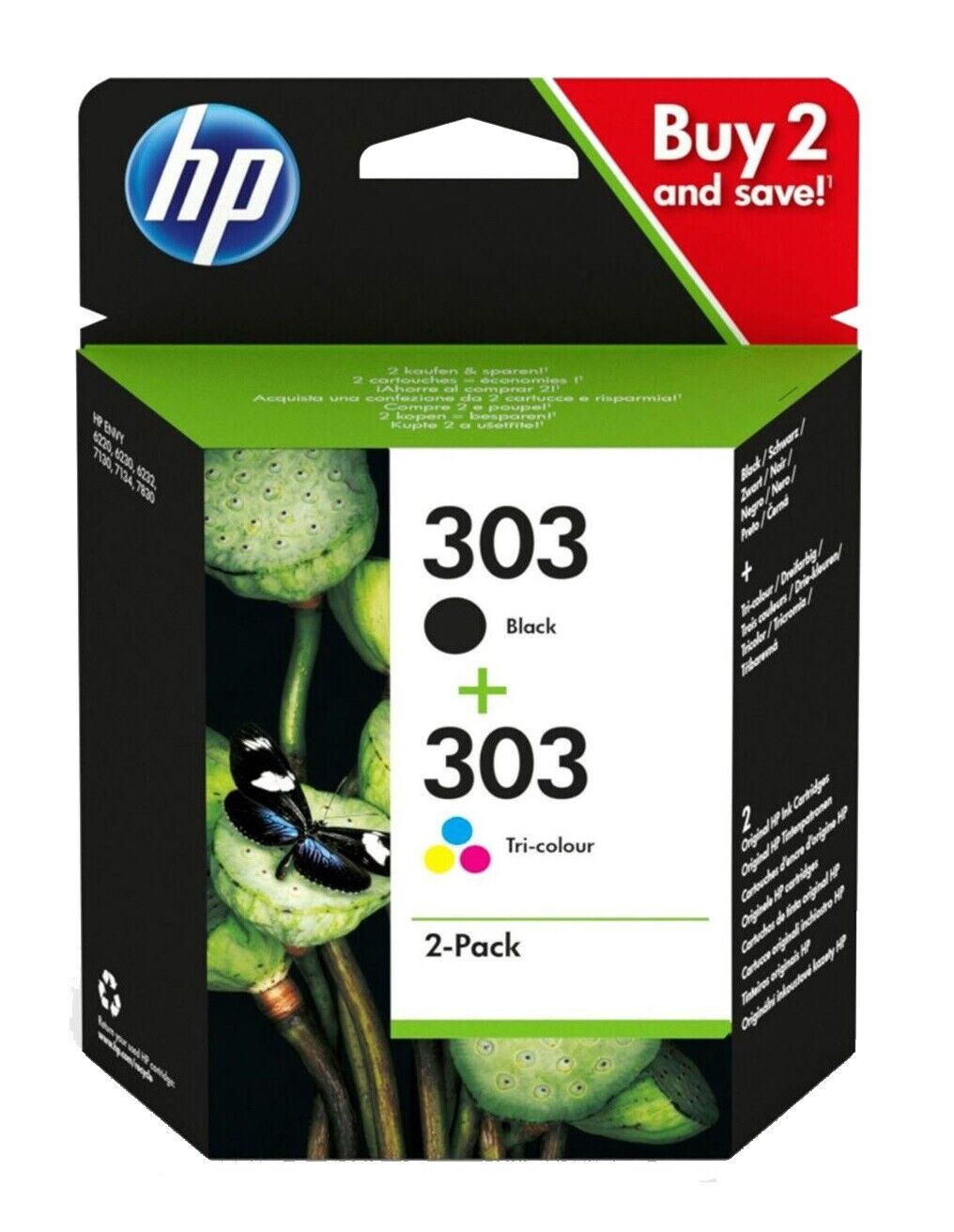 Original HP 303 Black & Colour Ink Cartridge For ENVY Photo 6234 Printer 3YM92AE