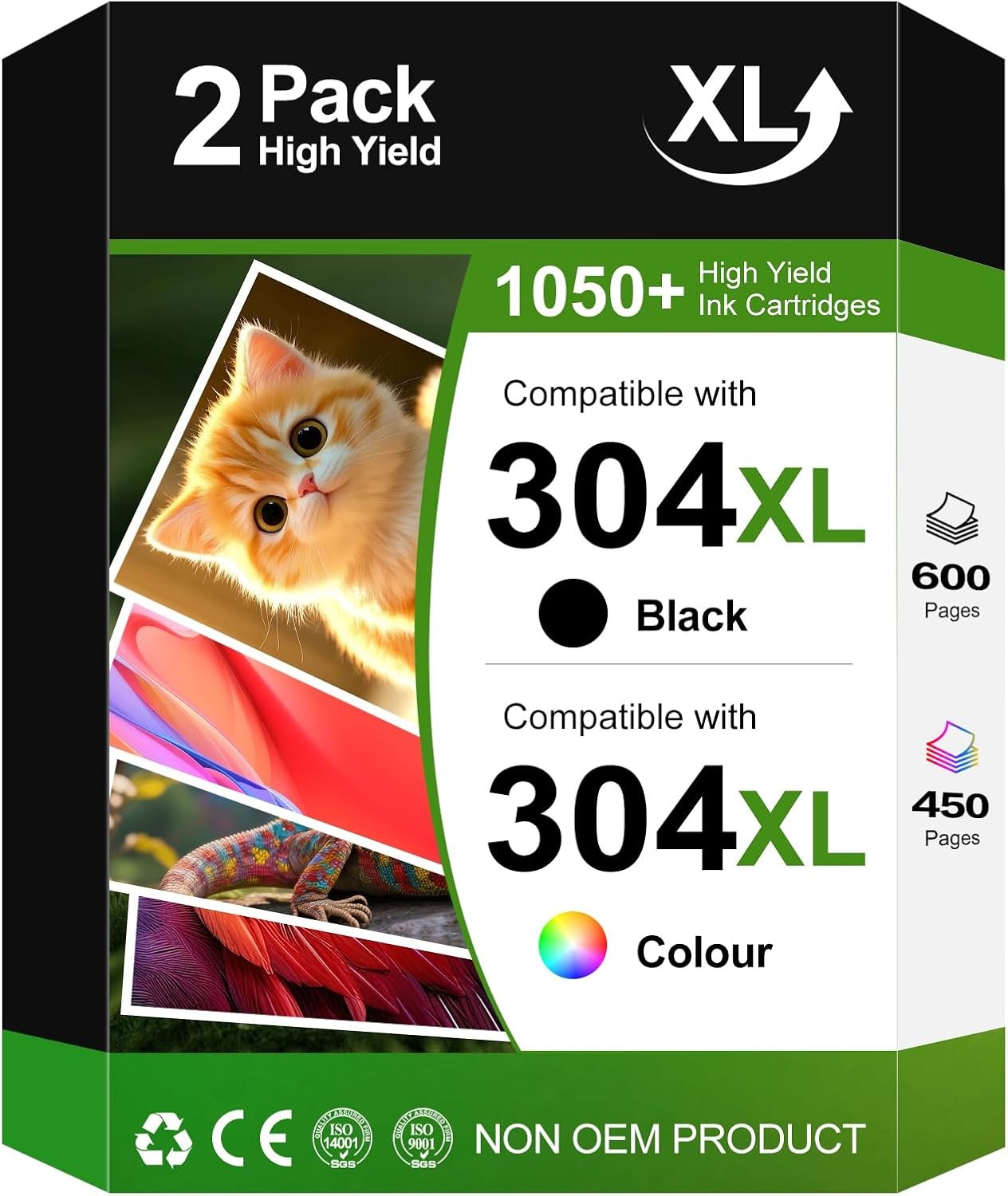 304XL High Yield Ink Cartridges, 304 Ink Cartridges Combo Pack Replacement for HP 304 Ink Cartridges Black and Colour Original, Printer Ink 304 XL for