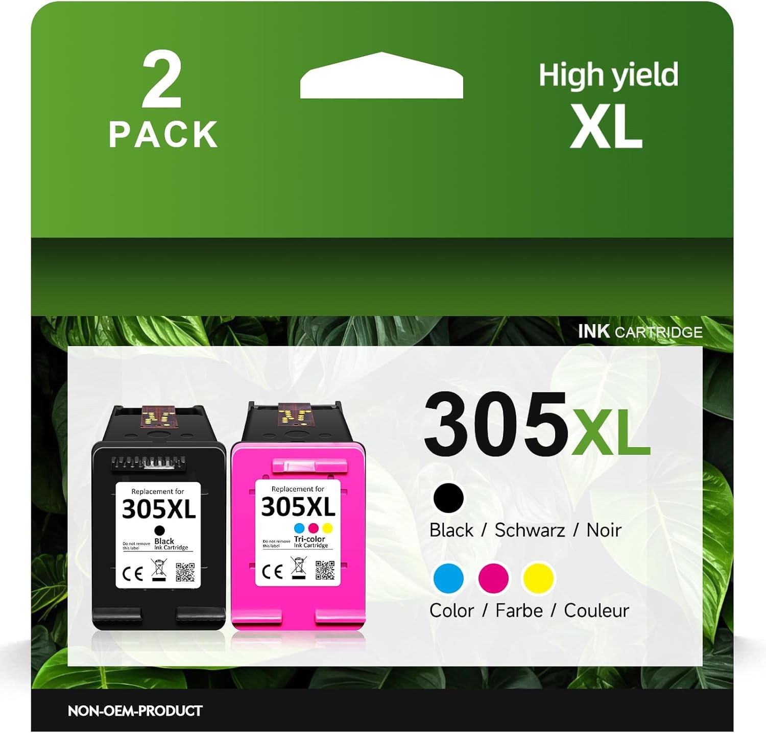 305XL Ink Cartridges Compatible for HP 305 XL Ink Cartridges for HP DeskJet 2700 2710e 2720e 2721 2722 2723 2724 Plus 4110 4120e Envy 6000e 6010e 6020e Pro 6400 6420 printers (2-Pack)