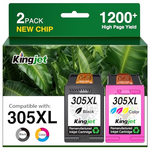 KINGJET 305 Ink Cartridges Black and Colour, 305XL Ink Cartridges Remanufactured for HP Printer Ink 305 XL for DeskJet 2700 2710 2720 2724 Plus 4100 4120 4130 Envy 6000 6020 6032 Pro 6400 6420 6430