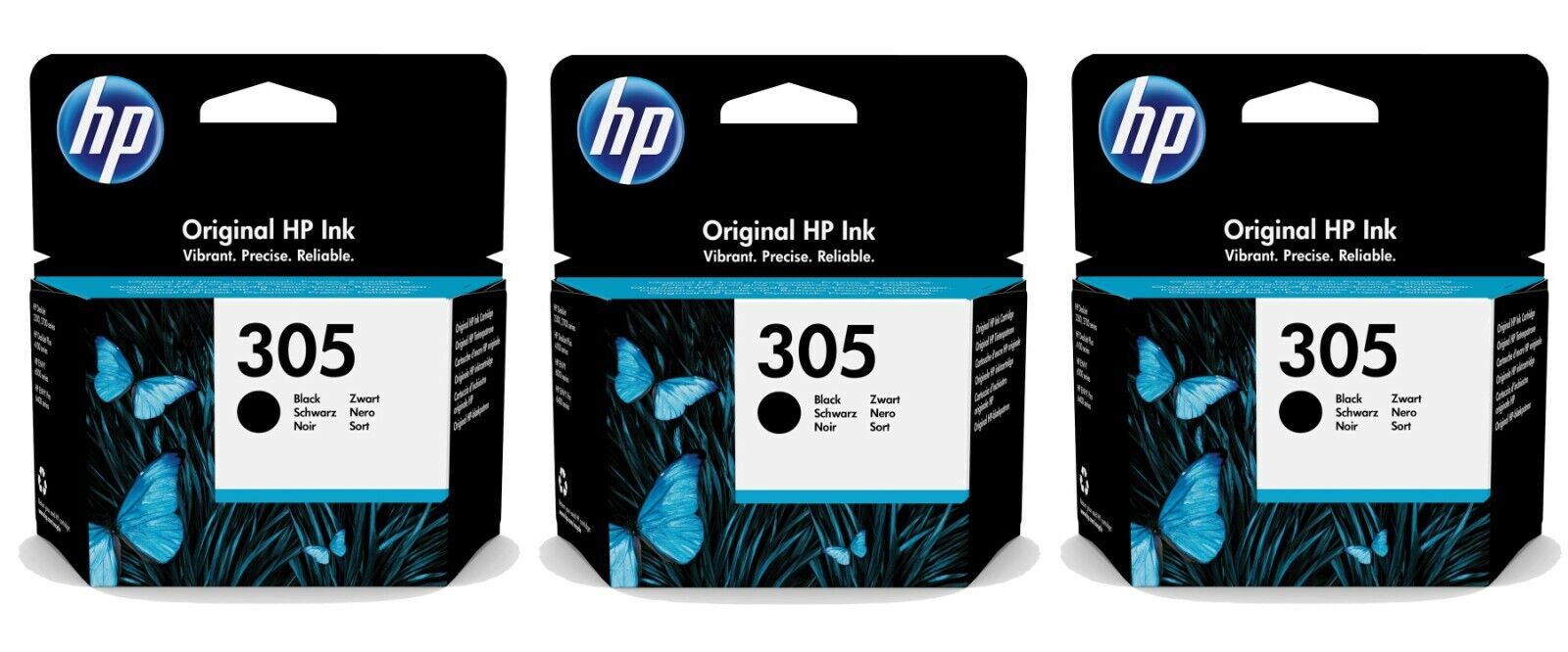3x Original HP 305 Black Ink Cartridges For DeskJet Plus 4120 Printer 3YM61AE
