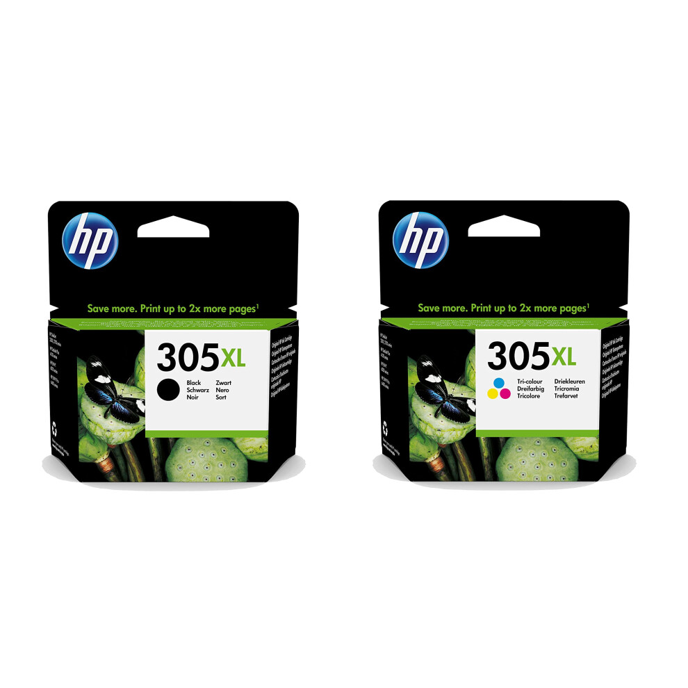 HP 6ZA94AE 305XL High Yield Original Ink Cartridges, Black/Tri-Colour, Multipack,Dual Pack (High Yield)