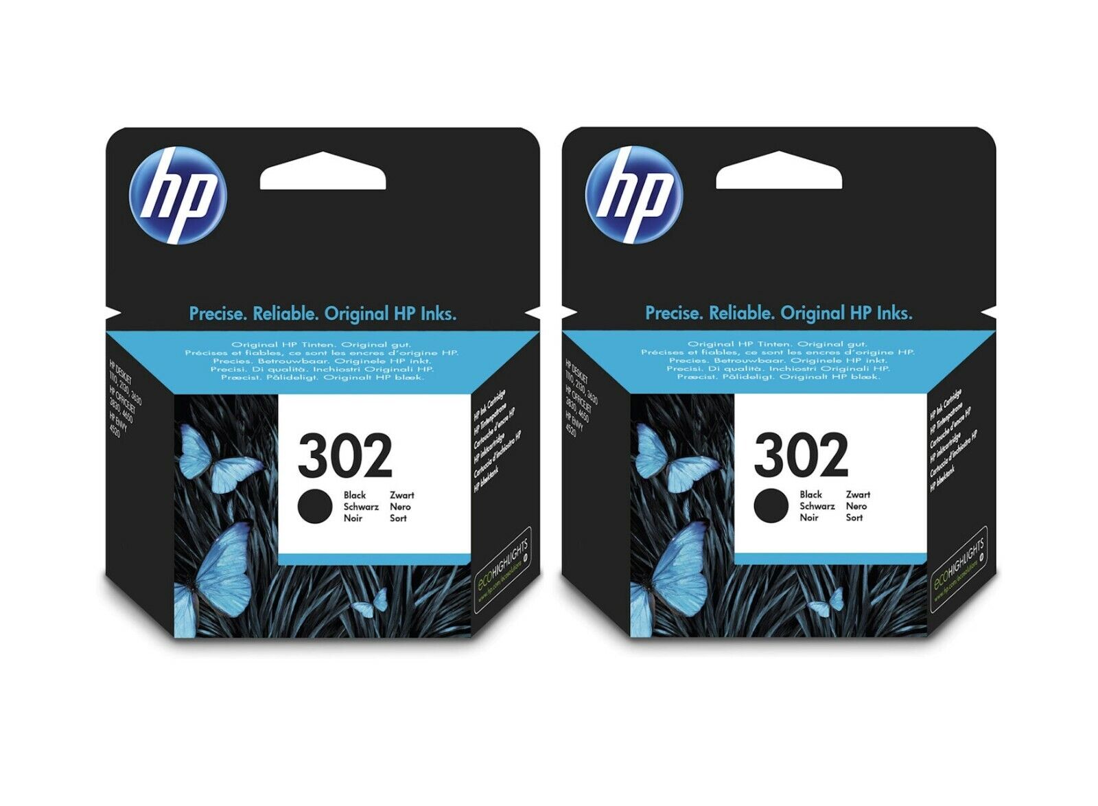 2x HP Original 302 Black Ink Cartridges For OfficeJet 3830 Printer, F6U66AE