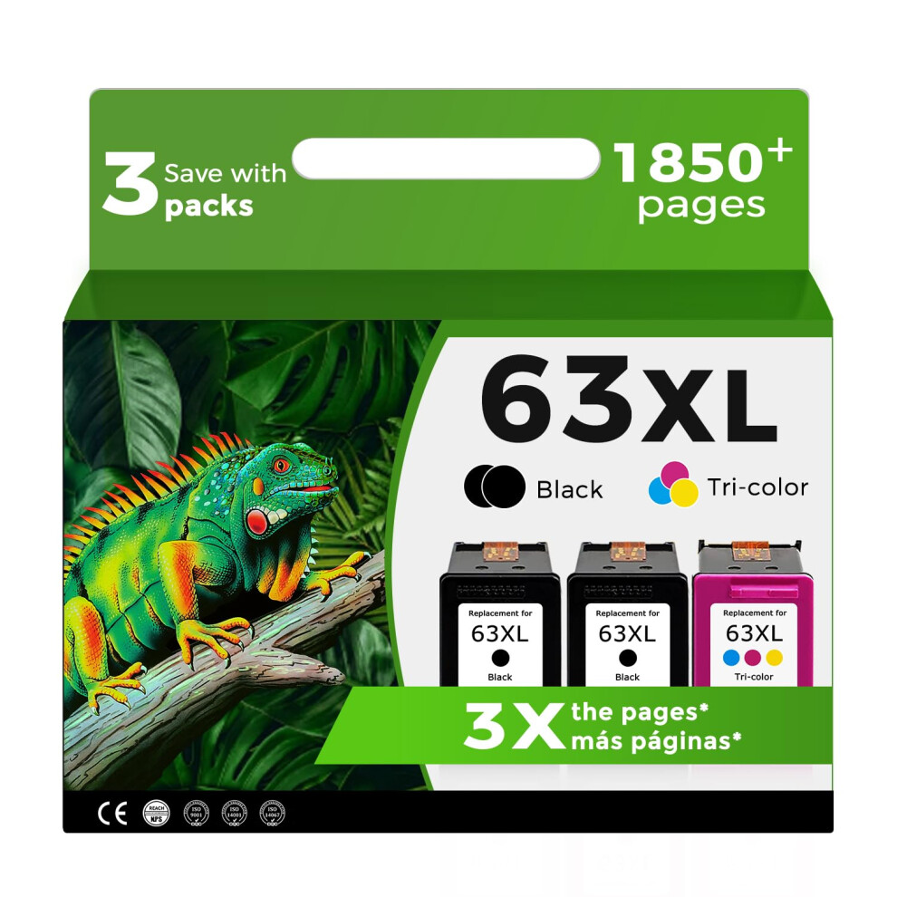 63XL Ink Cartridges for HP 63 XL Black Color Combo 3-Pack Replacement for HP63 HP63XL for 3830 4520 5258 3630 4650 5255 4652 4655 5200 4512 3632 5252
