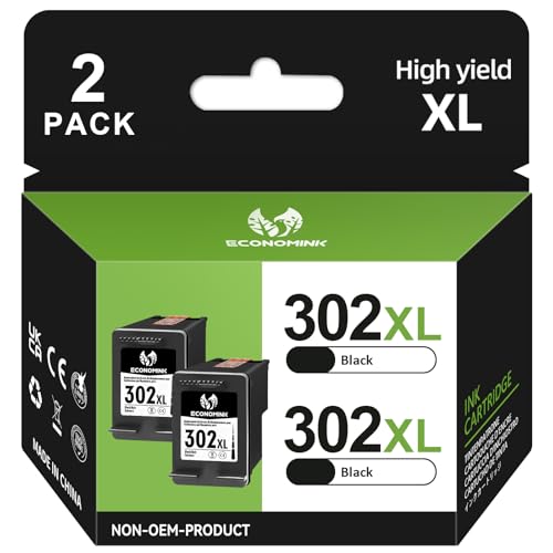 ejet 302XL Black Ink Cartridges High Yield Remanufactured for HP 302 XL for OfficeJet 3832 4650 3831 3835 Envy 4527 4520 4524 Deskjet 2130 2134 3630 3632 3634 Printer (2 Black)