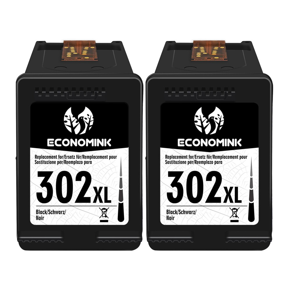 ejet 302XL Black Ink Cartridges High Yield Remanufactured for HP 302 XL for OfficeJet 3830 3831 3835 4650 Envy 4520 4524 4527 Deskjet 2130 2134 3630 3632 3634 Printer (2 Black)