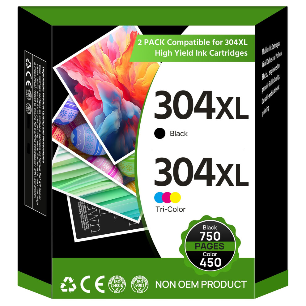 Coloran 304XL Ink Cartridges Black and Colour Combo Pack Replacement for HP 304 Cartridges Black and Colour for HP Envy 5010 5020 5032 5030 5000 DeskJet 3760 3762 2600 2620 2630 2633 3720 3750(2-Pack)