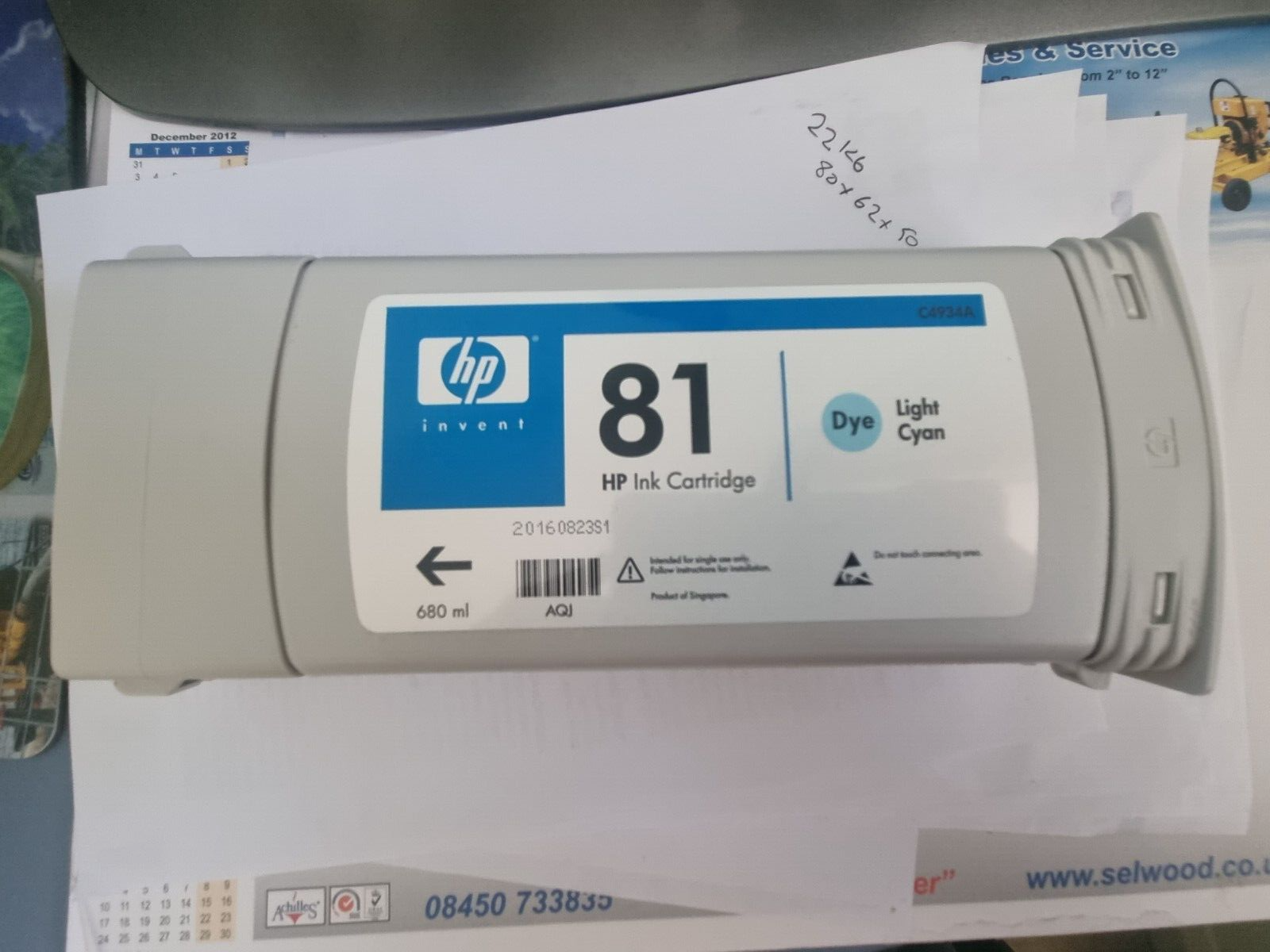 Genuine HP 81 Light Cyan Dye Ink Cartridge 680ml C4934A Designjet 5000 5500 Vat