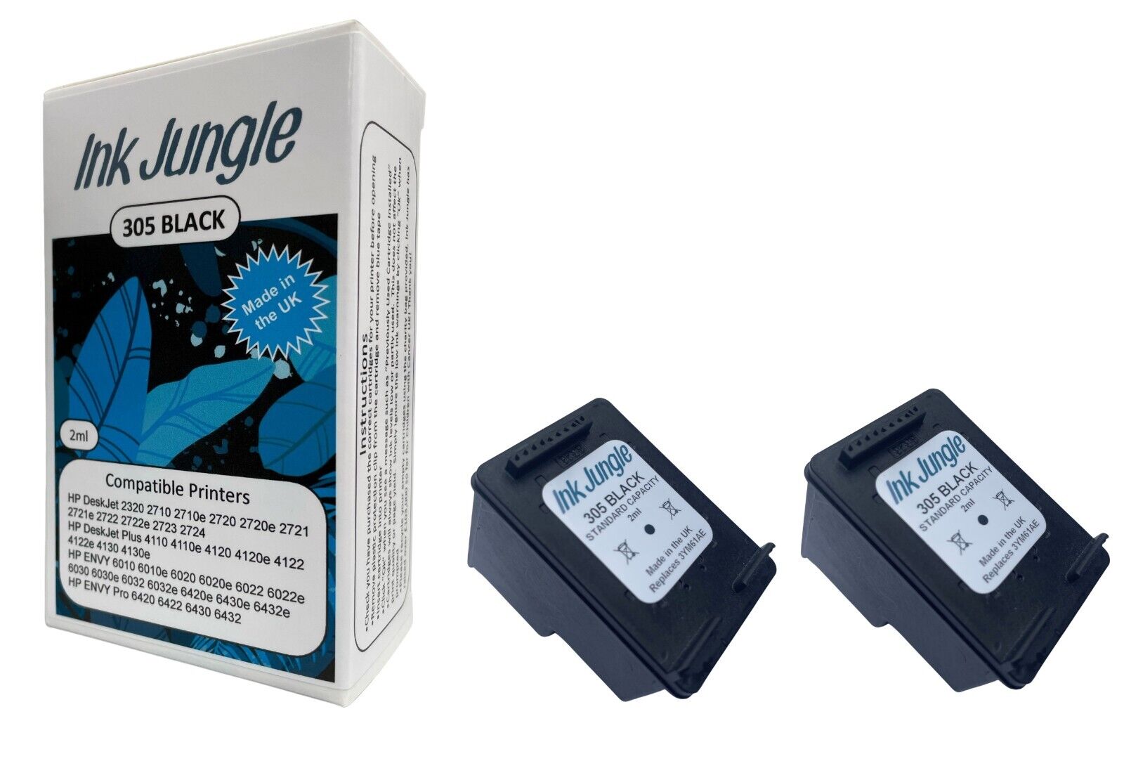 2x Refilled 305 Black Ink Cartridges For HP DeskJet 4122e Printer 3YM61AE