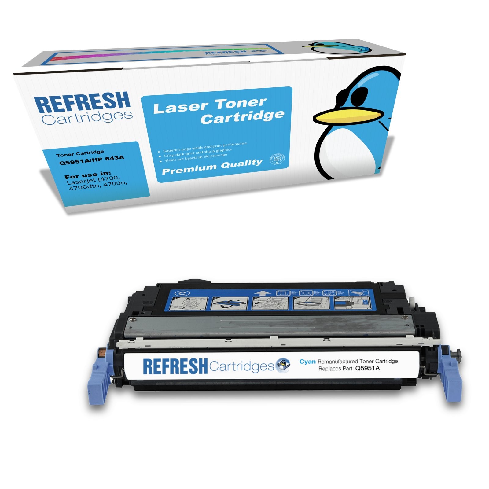 Refresh Cartridges Replacement Cyan Q5951A/643A Toner Compatible With HP Printer