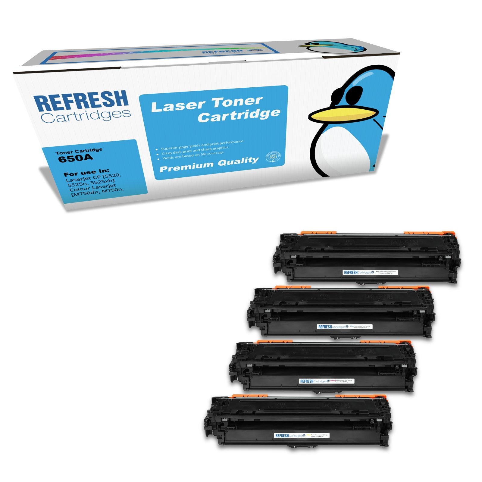 Refresh Cartridges Full Set 4 Pack 650A Toners Compatible With HP Printers