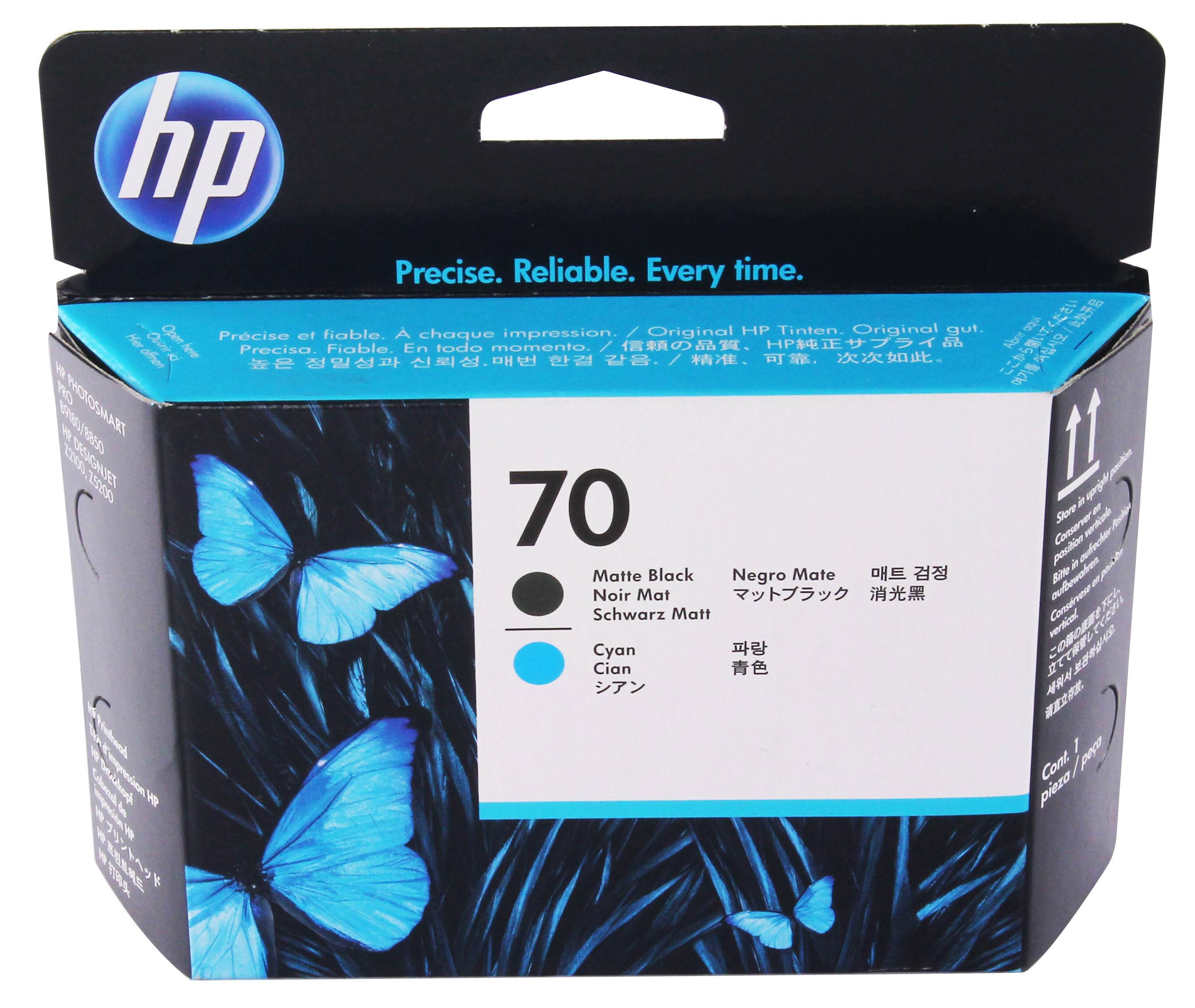 Original HP No. 70 Matte Black and Cyan Printhead