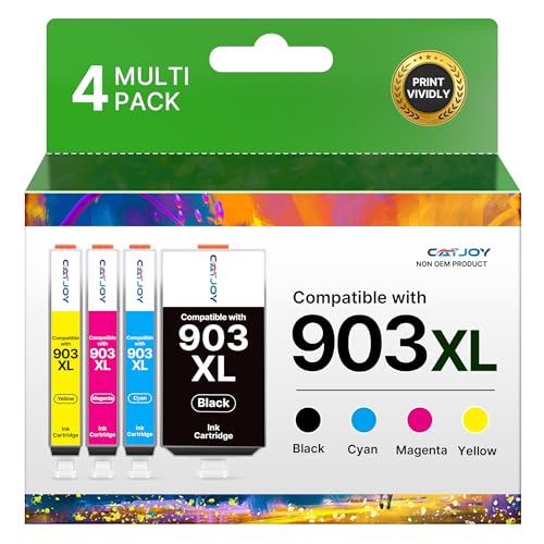 CATJOY 903XL Ink Cartridges Replacement for 903 Ink HP 903XL Ink Cartridges Multipack with Newest Chip for HP Officejet Pro 6950 6960 Officejet Pro 6970 6960 Printer (903XL,4P)