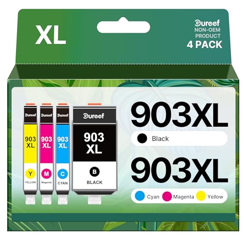 Gureef 903 903XL Replacement for HP 903XL Ink Cartridges 903 Ink Multipack Compatible for HP Officejet 6960 6950 Officejet Pro 6960 6970 With Newest Chip (Black Cyan Magenta Yellow)
