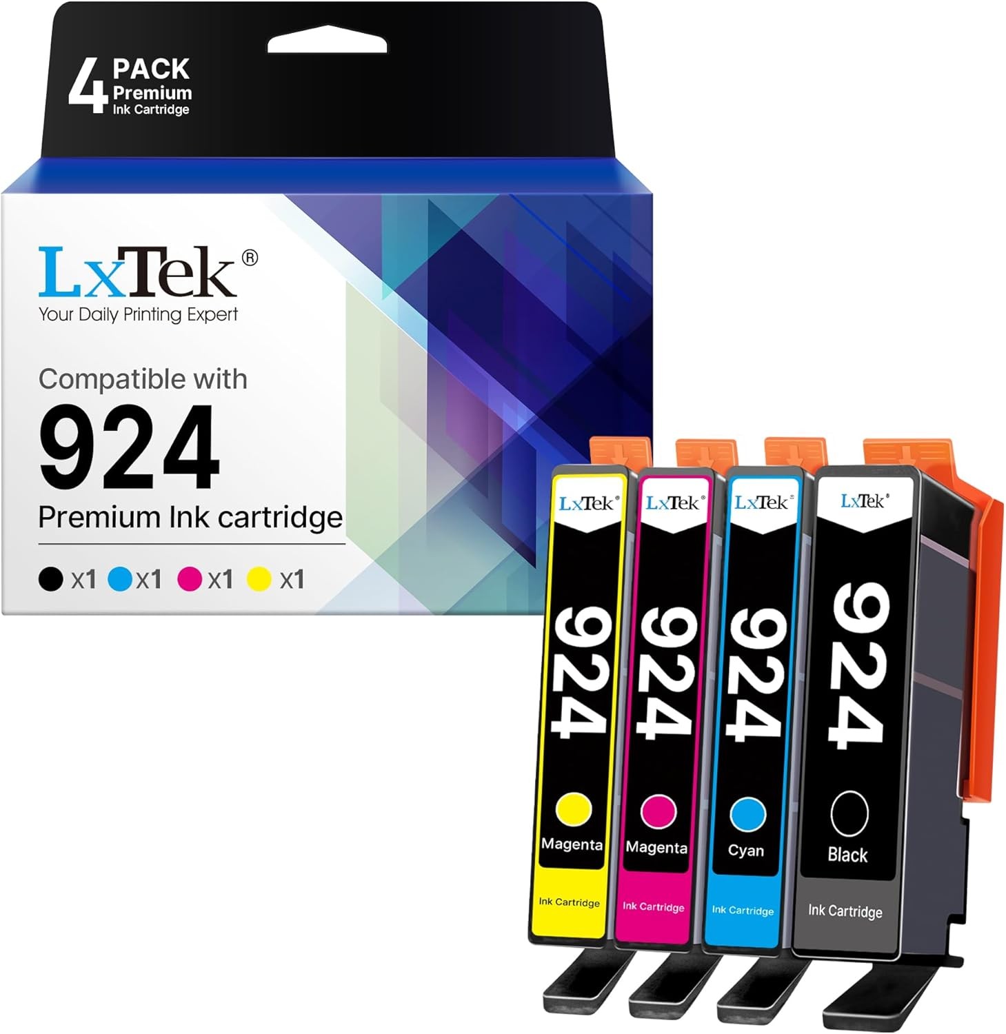 LxTek 924 Ink Cartridges Replacement for HP 924 Ink Compatible for HP OfficeJet Pro 8120e 8122e 8124e 8125e 8132e 8134e 8135e 8130e 8138e 8139e All-in-One Printer (Black Cyan Magenta Yellow, 4-Pack)