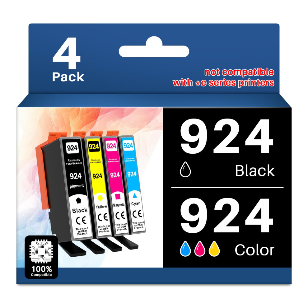 924 Ink Cartridges Replacement for HP 924 for HP OfficeJet Pro 8120e OfficeJet Pro 8122e 8124e 8125e 8132e 8134e 8135e 8130e 8138e 8139e Inkjet Photo Printer | Print, Copy & Scan (With Chip,4 Pack)