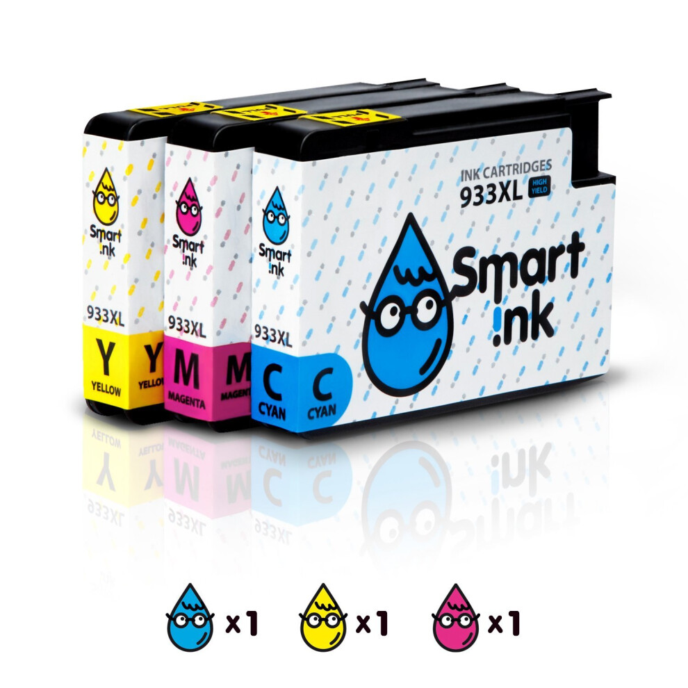 Smart Ink Compatible Ink Cartridge Replacement for HP 932XL 933XL 932 XL 933 High Yield (C/M/Y 3 Combo pack) to use with Officejet 6100 6600 6700 7110 7510 7610 7612 7620