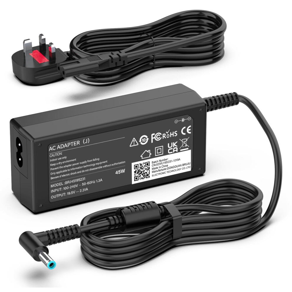 Compatible with HP Laptop Charger 65W 45W Pavilion EliteBook ProBook Envy Stream Computer UK Smart Blue Tip AC Adapter Power Cord