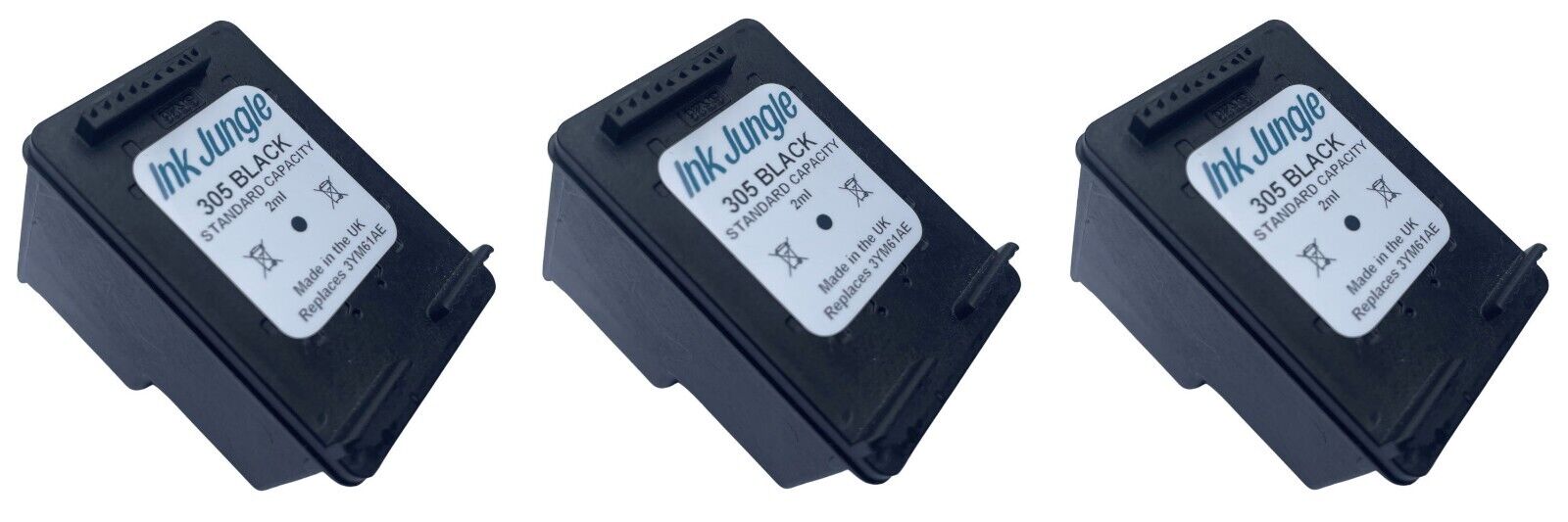 3x 305 Black Ink Cartridges For HP DeskJet 2722e Printer Replaces HP 305