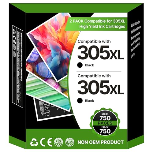 305XL Ink Cartridges High Yield – Black Ink Replacement for HP 305 Black Ink Cartridge, Compatible with HP Envy 6000 6020e 6032e, DeskJet 2700 2700e 2710e 2722e 2800e 2810e 2820e (2 Pack)