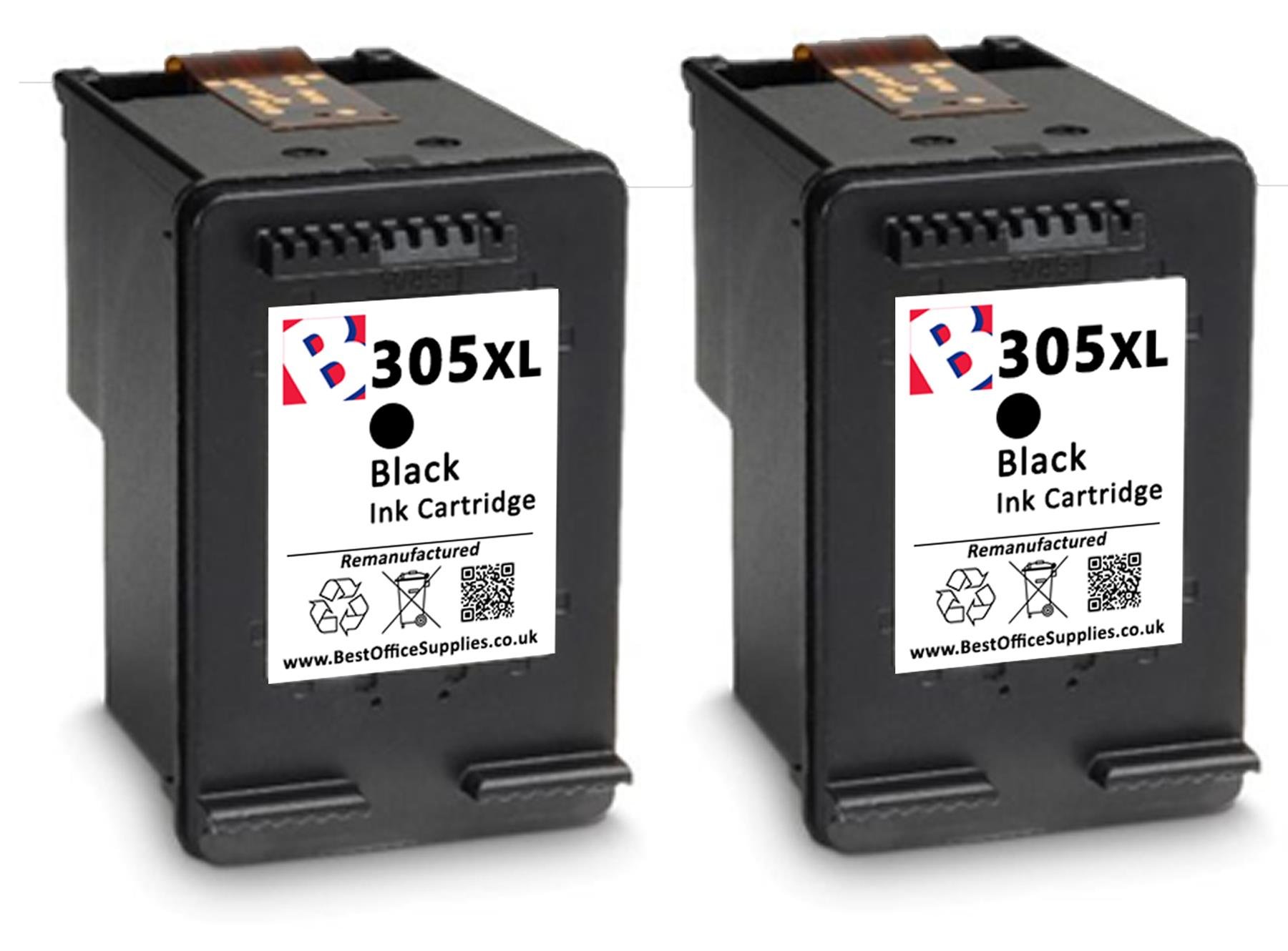 2 x 305 XL Black Refilled Ink Cartridges For HP Deskjet 2810e Printers