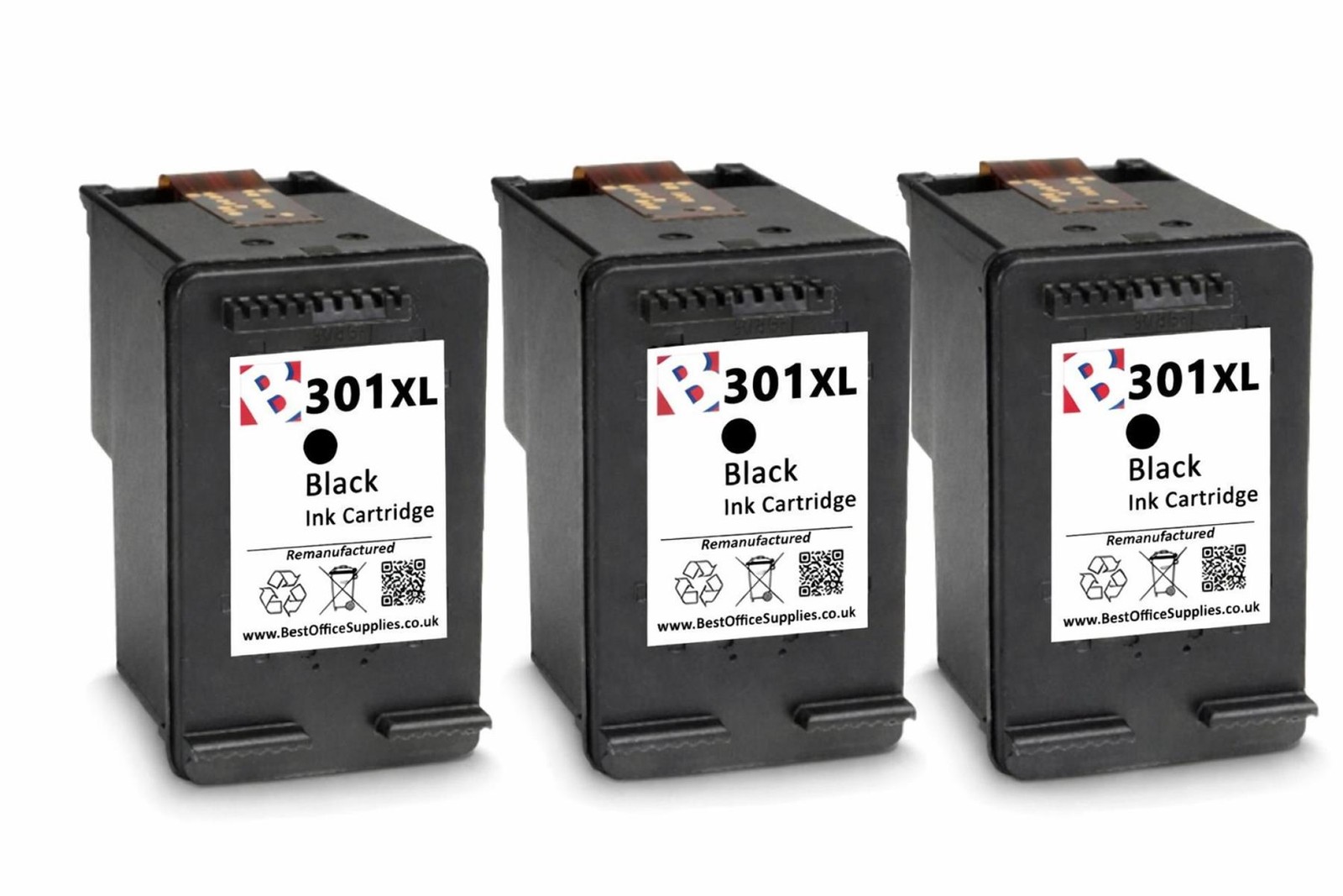 3 x 301 XL Black Refilled Ink Cartridges For HP Envy 4507 Inkjet Printers