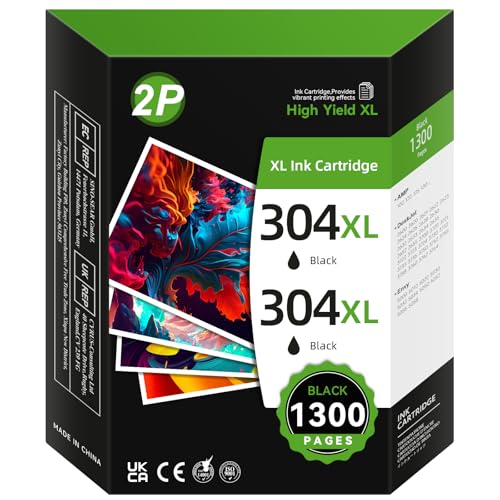 304XL Ink Cartridges Compatible for HP 304 XL Black for HP DeskJet 2620 2622 2630 2632 2633 2634 3720 3730 3733 3735 3750 3760 ENVY 5010 5020 5030 5032 5055 AMP 120 131 Printers (2-Black)