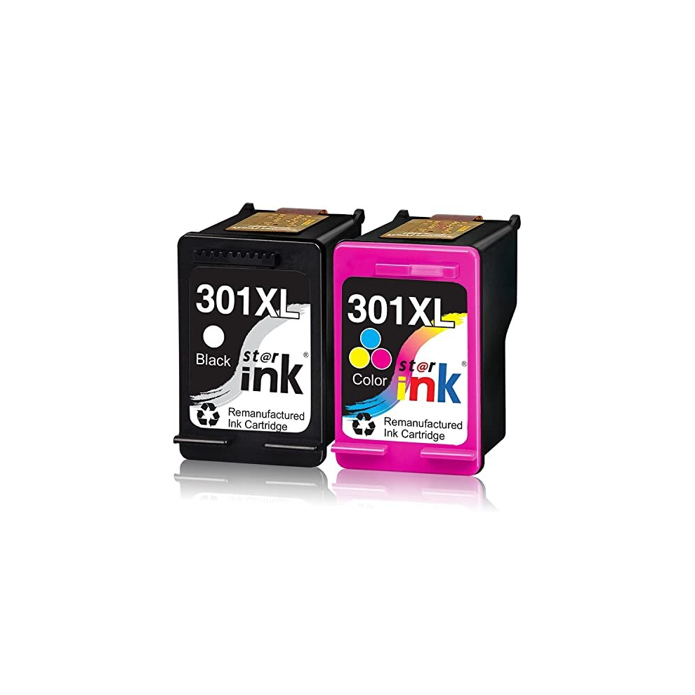 301XL Ink Cartridges 2-Pack Black and Colour Combo Pack Remanufactured for HP 301XL for Envy 4500 5530 5532 4502 4507 DeskJet 2540 2050 1050 OfficeJet