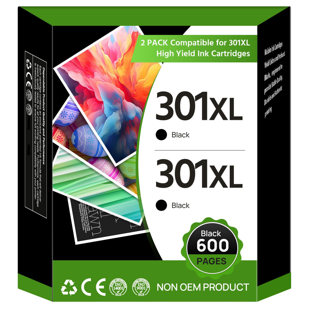 Compatible 2 X Black Ink Cartridge For Hp 301xl Envy 5530 4509 E-all-in-one