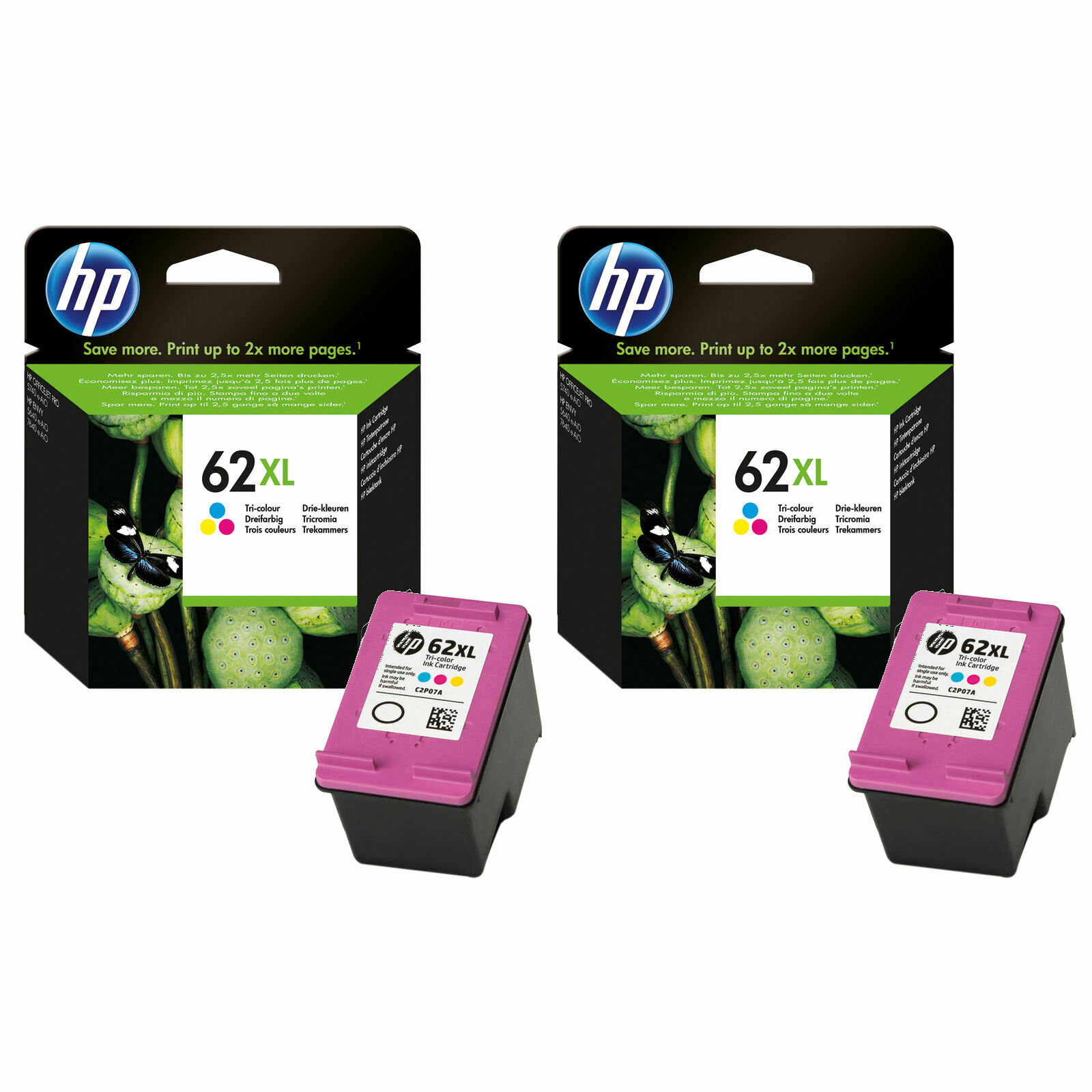 2x HP 62XL Colour High Capacity Original Ink Cartridges For ENVY 5540 Printer