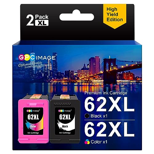 GPC Image 62XL Ink Cartridges Replacement for HP 62 XL for Envy 5540 5541 5542 5543 5544 5545 5546 5547 5548 5640 5642 5644 5646 7640 OfficeJet 200 250 5740 5742 5744(Black Colour, 2-Pack)