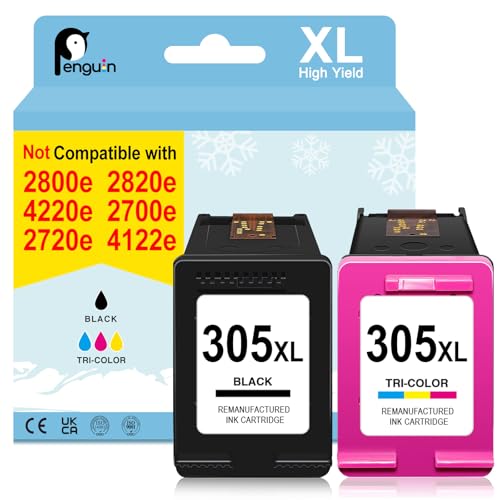 Penguin 305 XL Colour for HP DeskJet 2820e Ink Cartridges for DeskJet 2810e 2800e 4220e 4222e 2710e 2720e 4120e 4130e 4122e Envy 6032e 6020e 6000e Envy Pro 6420 for HP 305 Printer Ink Replacement