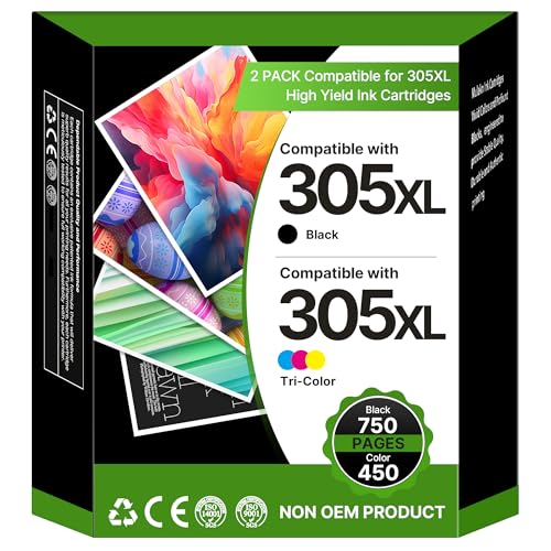 305XL Ink Cartridges Compatible for HP 305 XL Ink Cartridges for HP DeskJet 2700 2710e 2720e 2721 2722 2723 2724 Plus 4110 4120e Envy 6000e 6010e 6020e Pro 6400 6420 printers (2-Pack)