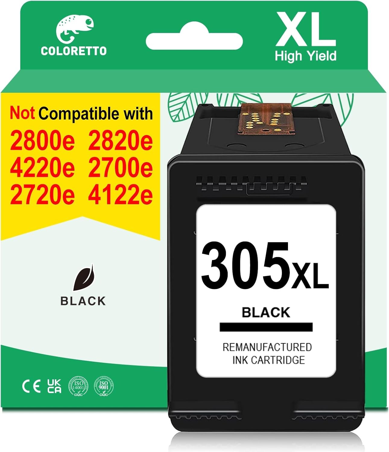 COLORETTO 305 Black Ink Cartridges for HP 305XL for Envy 6000e 6032e 6020e 6022