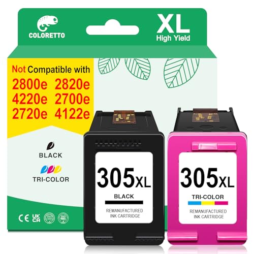 COLORETTO 305 Ink Cartridges Black and Colour for Envy 6000e 6032e 6020e for HP 305XL Printer Ink Replacement for Envy 6022e 6010e 6420e 6430e 6432e 6452