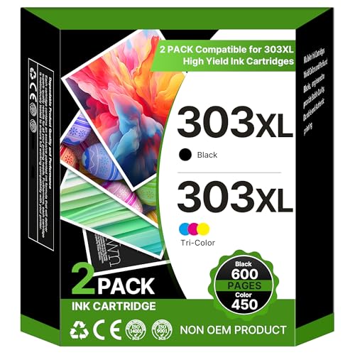 303XL 303 XLInk Cartridges Combo Pack Replacement for HP 303 303XL Ink Cartridges Black and Colour Compatible With HP Envy Photo 6200 6230 7100 7134 7234 6234 6220 7830 7130 Printer(2-Pack)
