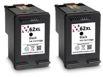 2 x 62 XL Black Refilled Ink Cartridges For HP Envy 5647 Printers