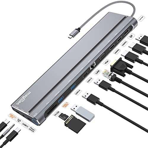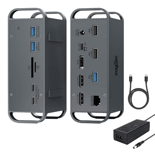 MagBac USB C Docking Station Dual Monitor, 15 in 1 Laptop Dock 3 Display 4K 60Hz, 65W Power Supply, Thunderbolt 3/4, 8 USB Port,2 HDMI+DP,1Gbps Ethernet Port, SD/TF for Mac and Windows Dell/Hp/Lenovo