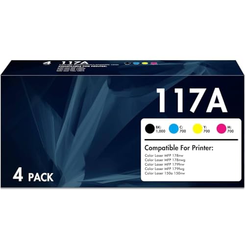 117A Toner Cartridge Compatible for HP 117A for Color LaserJet MFP 178nw 179fnw 150nw 150a 178nwg 179fwg 178 179 150 W2070A W2071A W2072A W2073A Ink - Black Cyan Yellow Magenta 4-Pack