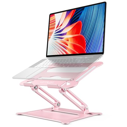 urmust Laptop Notebook Stand Holder, Ergonomic Adjustable Laptop Stand Riser Portable with Heat-Vent Compatible with MacBook Air Pro, Dell, HP, Lenovo Light Weight Aluminum Up to 15.6" (Rose Gold)
