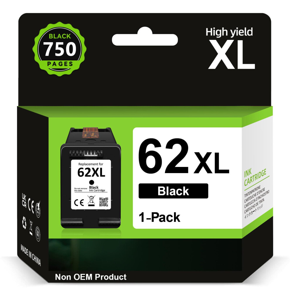 62XL Ink Cartridge Black Replacement for HP 62 62XL Black Ink Cartridges Printer Ink 62 XL for Envy 5540 5541 5542 5543 5544 5545 5546 5547 5548 5640 5642 5644 7640 OfficeJet 200 250 5740 5742 5744