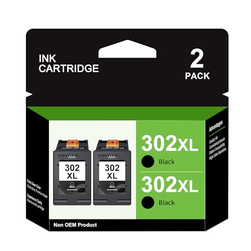 302XL Ink Cartridges Replacement for HP 302XL for DeskJet 1110 2130 2134 3630 3632 3634 Envy 4520 4521 4522 4523 4524 Officejet 3830 3834 4650 4651 4652 4654 (Black Colour, 2-Pack)