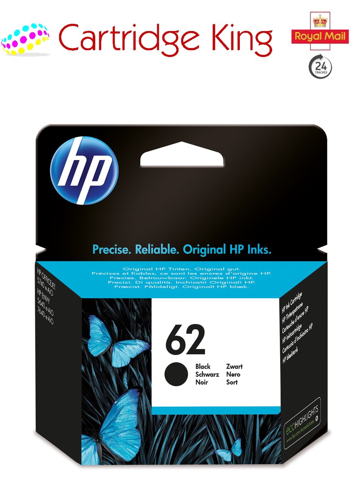 HP 62 Genuine Officejet 5740 e-All In One Black & Colour Ink Cartridges