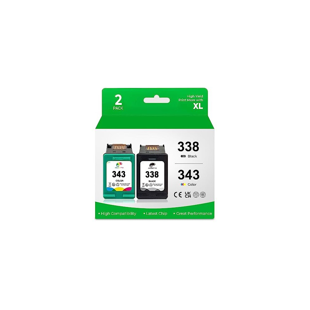 338XL 343XL Ink Cartridge Replacement for HP 338 343 Compatible with Photosmart 2575 2610 2710 2713 8150 Deskjet 460c 5740 6540 6840 Officejet 4212