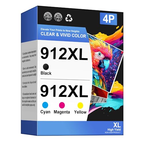 912XL Ink Cartridges Combo Pack Replacement for HP 912XL Compatible with HP Officejet Cartridges 8012 8014 8015 8022 8024 8025 AIO Printers (Black, Cyan, Magenta, Yellow, 4 Pack)