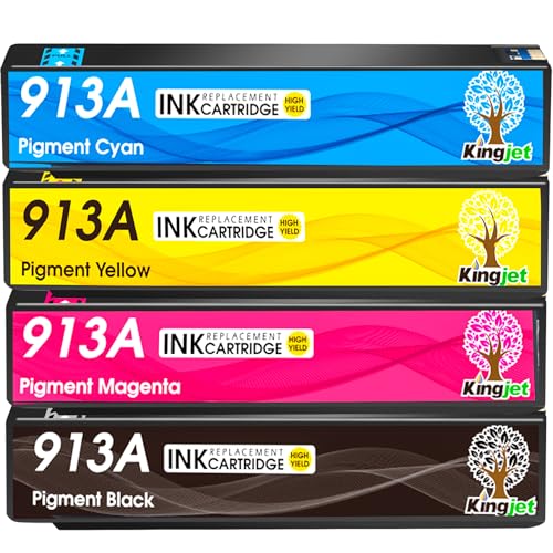 KINGJET 913A Ink Cartridges for HP 913A 913 Ink Multipack for PageWide Pro 377dw 377dn 477dw 477dn 352dn 452dn MFP 477dw 552dw 577dw Managed MFP P55250dw P57750dw (Black Cyan Magenta Yellow)