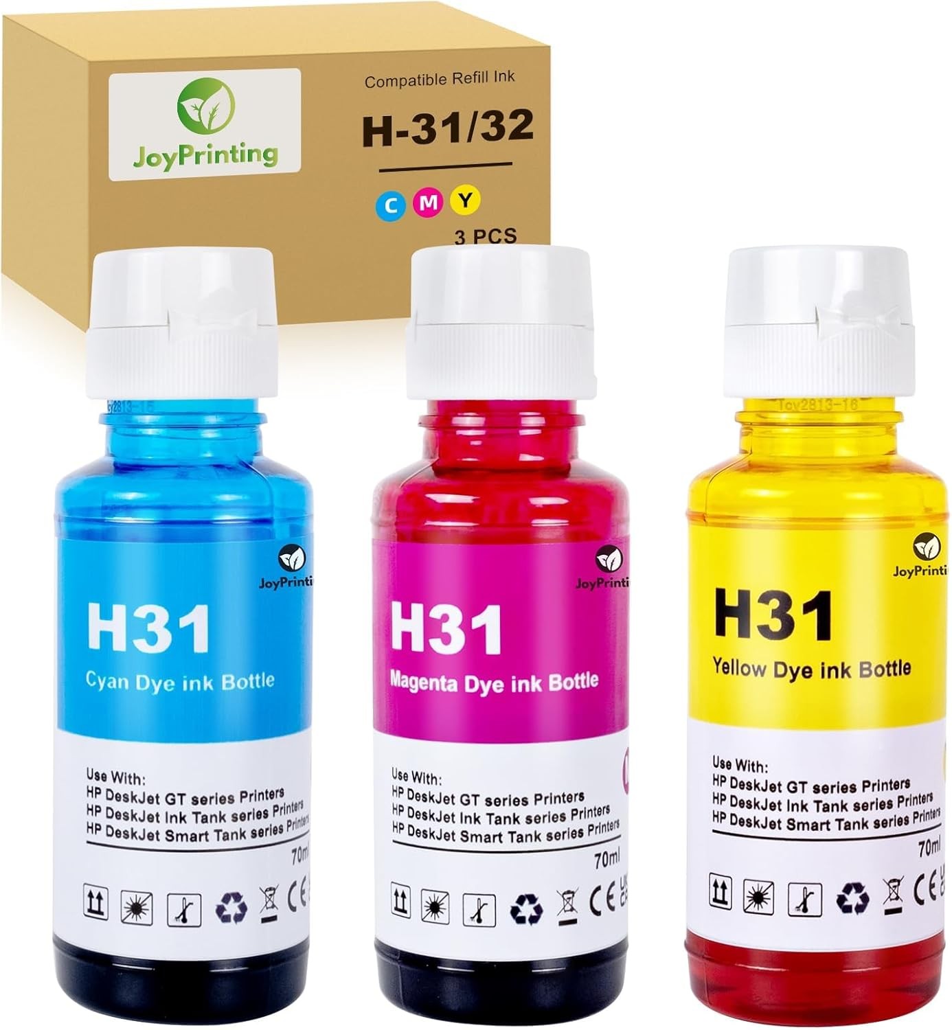 31 Ink 70ml Bottle Set Compatible with HP 31 Ink Bottles for Smart Tank 502 510