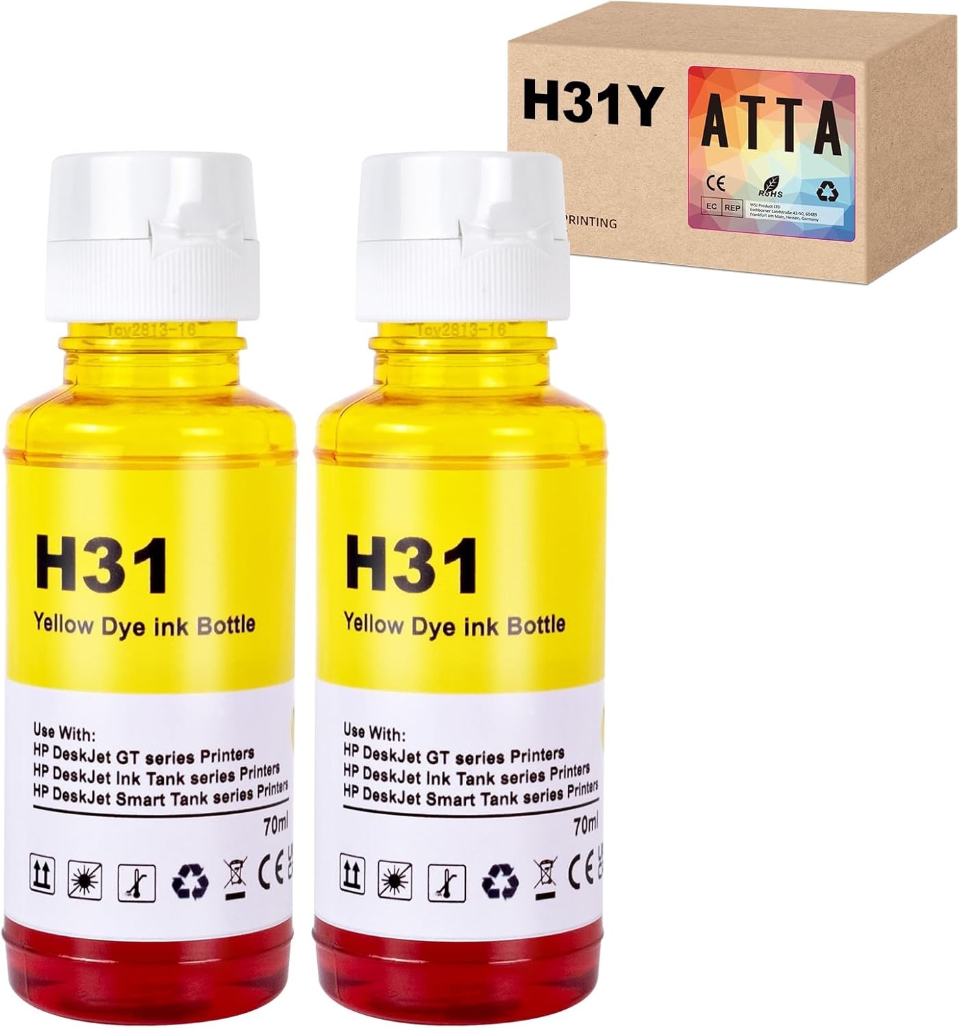 ATTA 31 Yellow Ink Bottle Replacement for HP 31 Ink Work for Smart Tank 7005 51