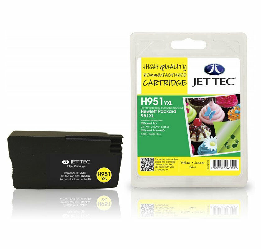 H951XL Yellow High Capacity JetTec Ink Cartridge to replace HP951XL